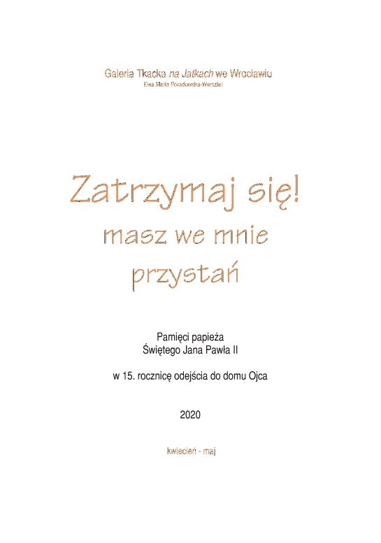 Zatrzymaj się! masz we mnie przystań. Pamięci papieża Świętego Jana Pawła II w 15. rocznicę odejścia do domu Ojca.