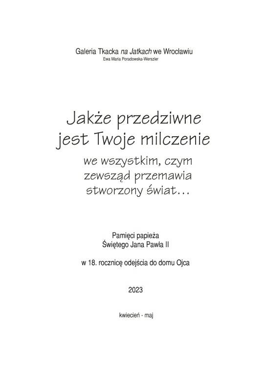 Jakże przedziwne jest twoje milczenie we wszystkim, czym zewsząd przemawia stworzony świat .... Pamięci papieża Świętego Jana Pawła II w 18. rocznicę odejścia do domu Ojca.